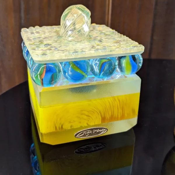 Citrom ízű hangulatú üveg torta szelet, 45 éves üveggolyókkal , monoporció mely a finomságot gyűjtői szenvedélyt hozza be. Ettől tényleg nem hízunk el:) Nemesi bronz aranyozott szignómmal aláírással