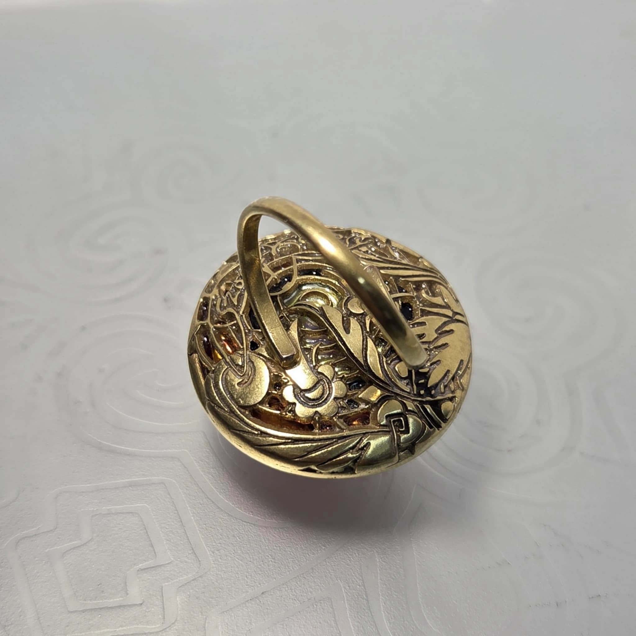Természetesen spirálisan méretre lehet állítani és így kényelmesen lehet viselni. Nemesi bronz foglalatban tartósan 24Karátos arannyal bevonva. 3,1cm átmérőjű és 2cm magas.