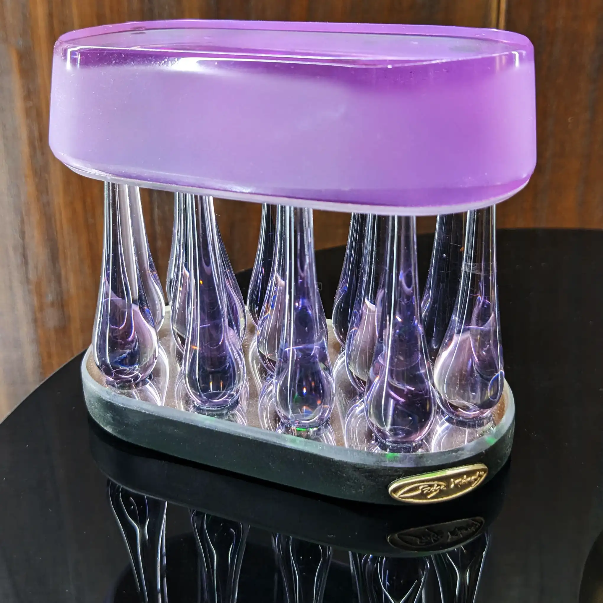Egy régi gyár épületének ,templomok magason elhelyezkedő üveg ablakából alkottam meg bontás után ezt a szobrot. Régi törött színes vázák újra olvasztásából alakultak ki a színek. Vajon milyen íze lehet? Magenta üveg amely különleges szín-válltoztató tulajdonsággal rendelkezik. A molekuláris szerkezetében neodium van ami érzékeny a fényre és mesterséges fénynél kékes míg természetesnél élő magenta színné dermed.
