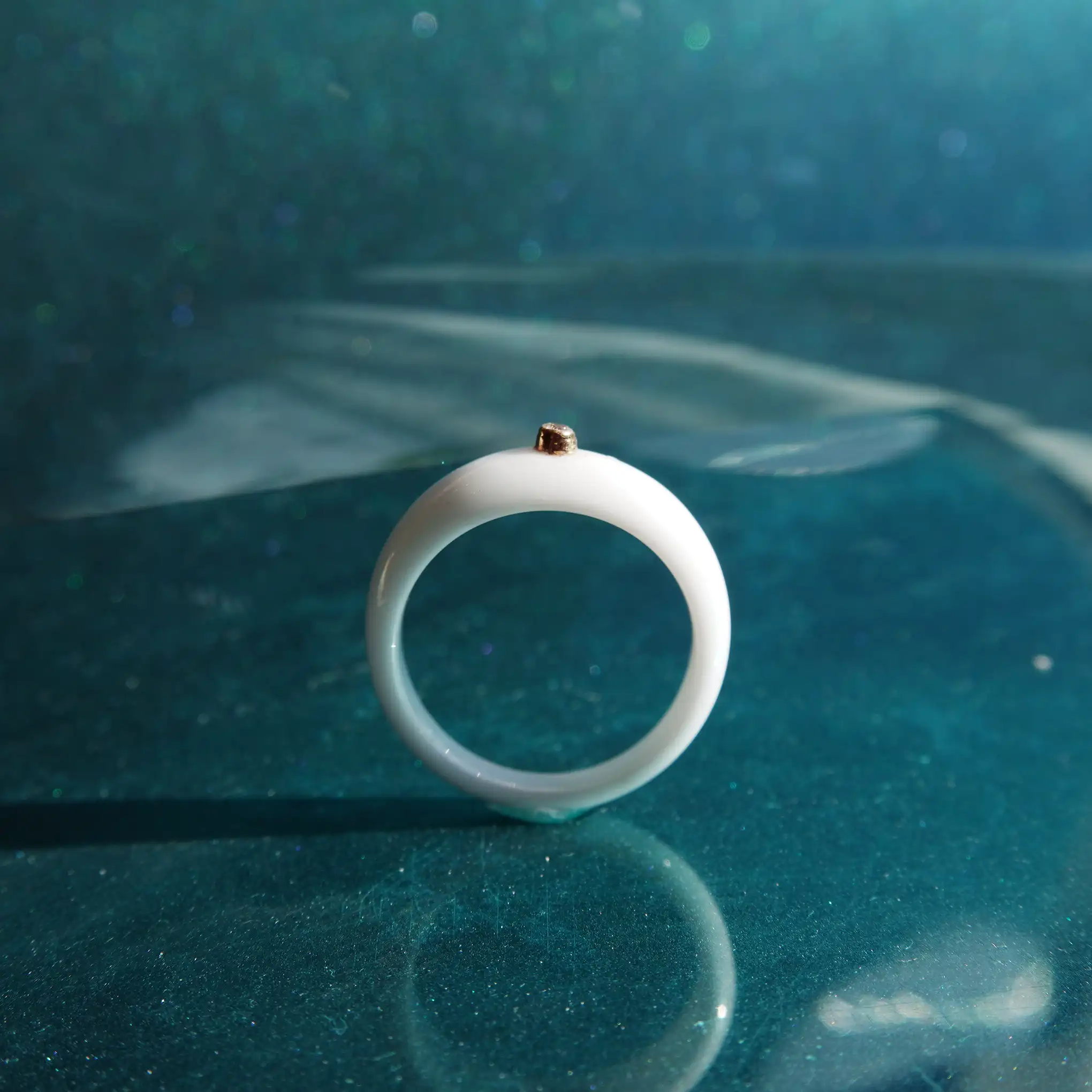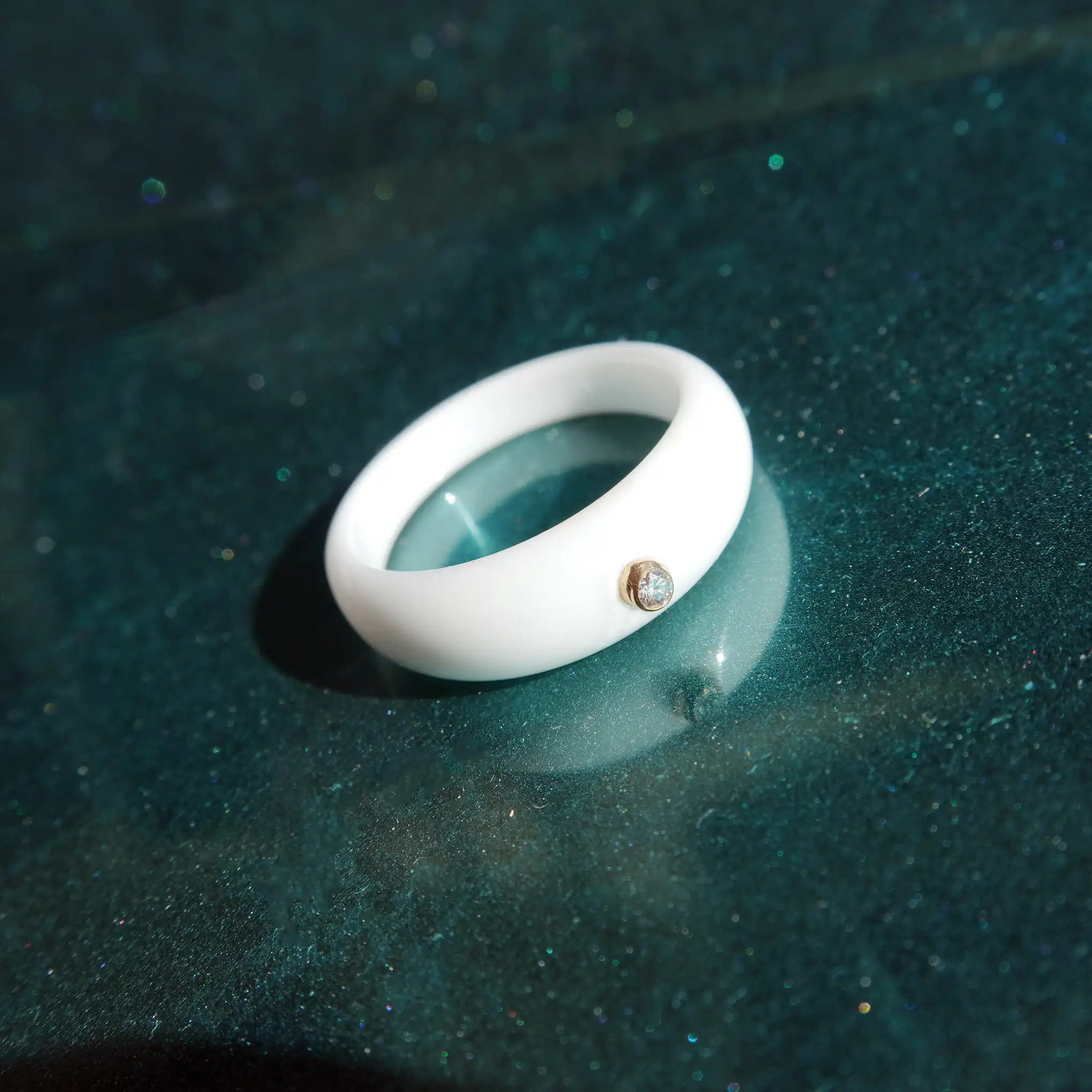 Fehér tiszta érzések magma kerámia gyűrű 14 Karátos arany foglalattal gyémánttal