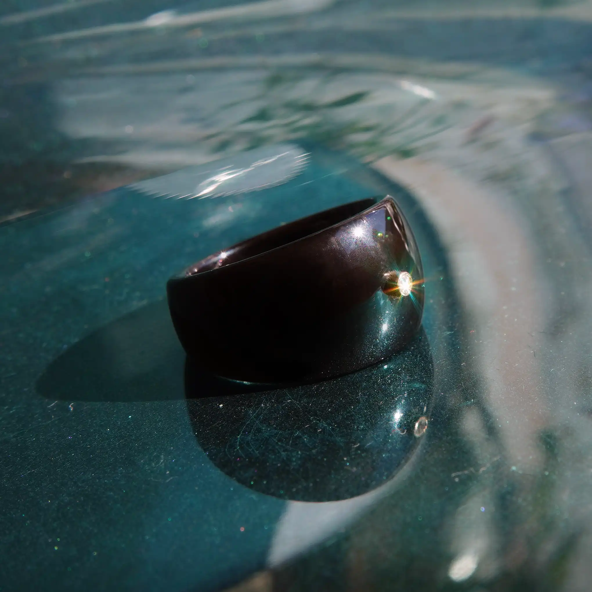 Fekete magma kerámia gyűrű 14 Karátos arany foglalattal gyémánttal