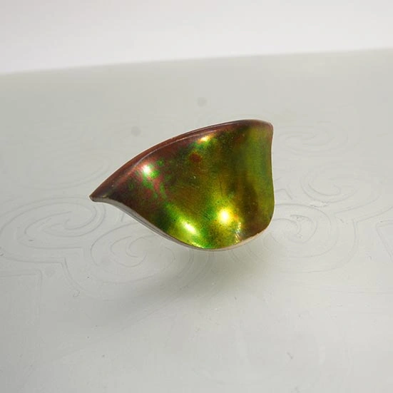 Zsolnay eozin paradicsomos vázának öböl szerűen csurgatott mélymázas hajlatából csiszolt gyűrű az 1940-es évekből 3x2cm Logózott  Nemesi bronz gyűrű alapon mely mindenki számára szabadon állítható a mérete. Dúsan aranyozva 24K arannyal